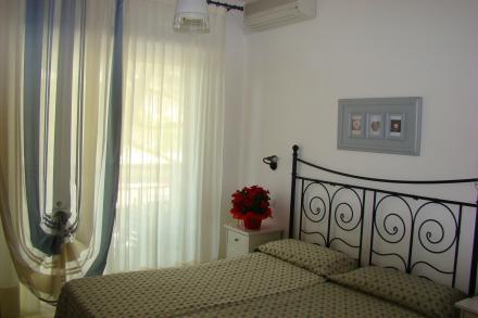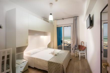 Chambre double avec salle de bains et grand balcon avec vue latérale sur la mer